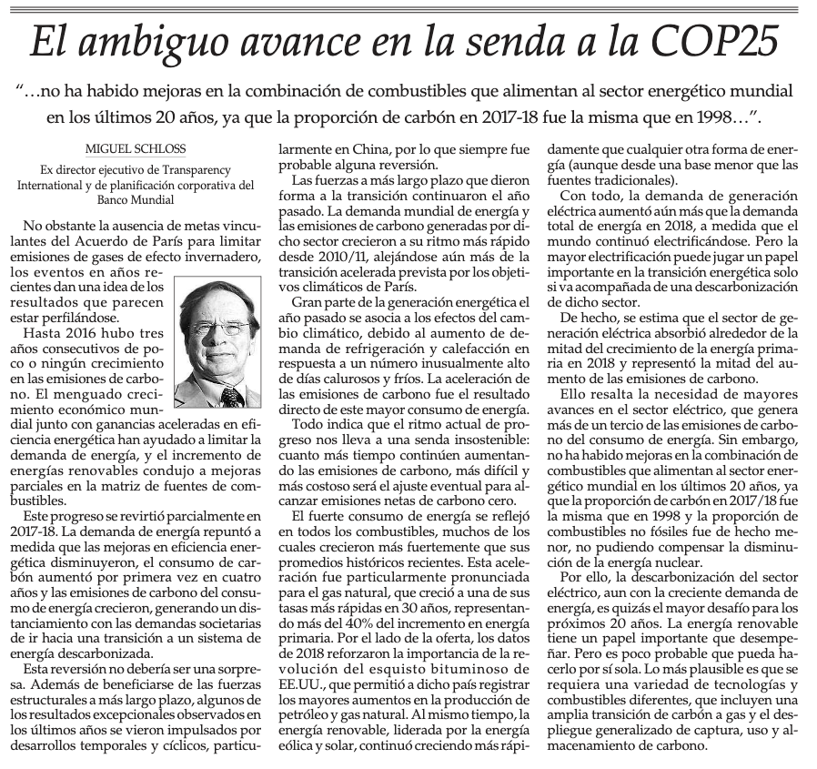 - Diario Financiero (Santiago, Chile), Oct. 2013 - Energía y medio ambiente: ¿objetivos en conflicto?